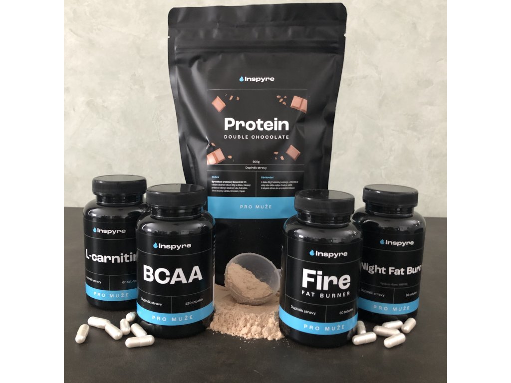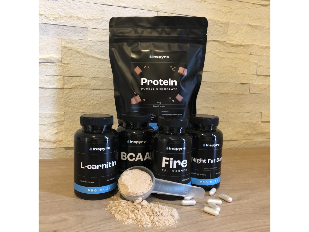 Představujeme balíček MAXI:Night fat burn - noční spalovač tuků založený na 100% přírodní surovině MOROSIL®. FIRE spalovač tuků jsme navrhli především pro muže a sportovce. Kofein, L-Carnitin, L-Taurin, Piperin nebo Garcinia Cambogia. To jsou některé z mnoha pečlivě vybraných přísad spalovače, který ti dodá energii, nastartuje metabolismus a pomůže při spalování tuků, protože je využije jako zdroj energie. L-carnitin - krásně podpoří účinek FIRE a zároveň získáš energii z tukových zásob. BCAA - Aminokyseliny s rozvětveným řetězcem, které jsou součástí každé tobolky, se rychle vstřebávají a představují okamžitý a nenahraditelný zdroj energie. Proto se při cvičení nemusíš bát, že by tělo začalo brát energii ze svalů a došlo k jejich úbytku. Snížení tvorby kyseliny mléčné a podpora imunitního systému díky vitaminům C a B6 jsou příjemným bonusem našich BCAA tobolek. Protein double chocolate -Kvalitní syrovátkový protein (80% whey protein) doplněný o trávicí enzymy laktáza, bromelain a papain, který chutná po čokoládě. Jde o lehce rozpustný, chutný, funkční a zcela přírodní produkt.
